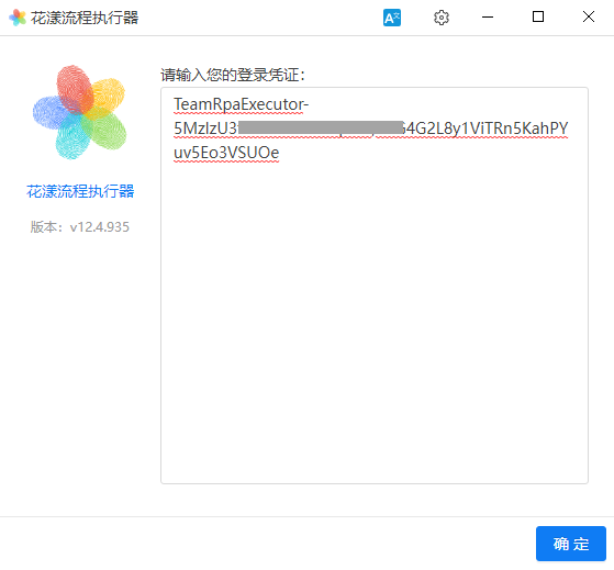 此时,我们可以找一台电脑,安装流程执行器,其登录界面如下图所示,请在此处输入刚才获得的登录凭证: