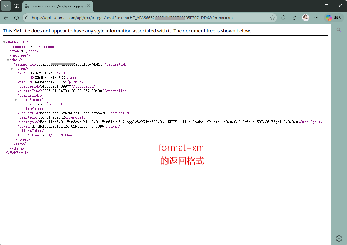 https://api.szdamai.com/api/rpa/trigger/hook?token=HT_AFA666B2612E424782F32E05F7071DD6&format=xml