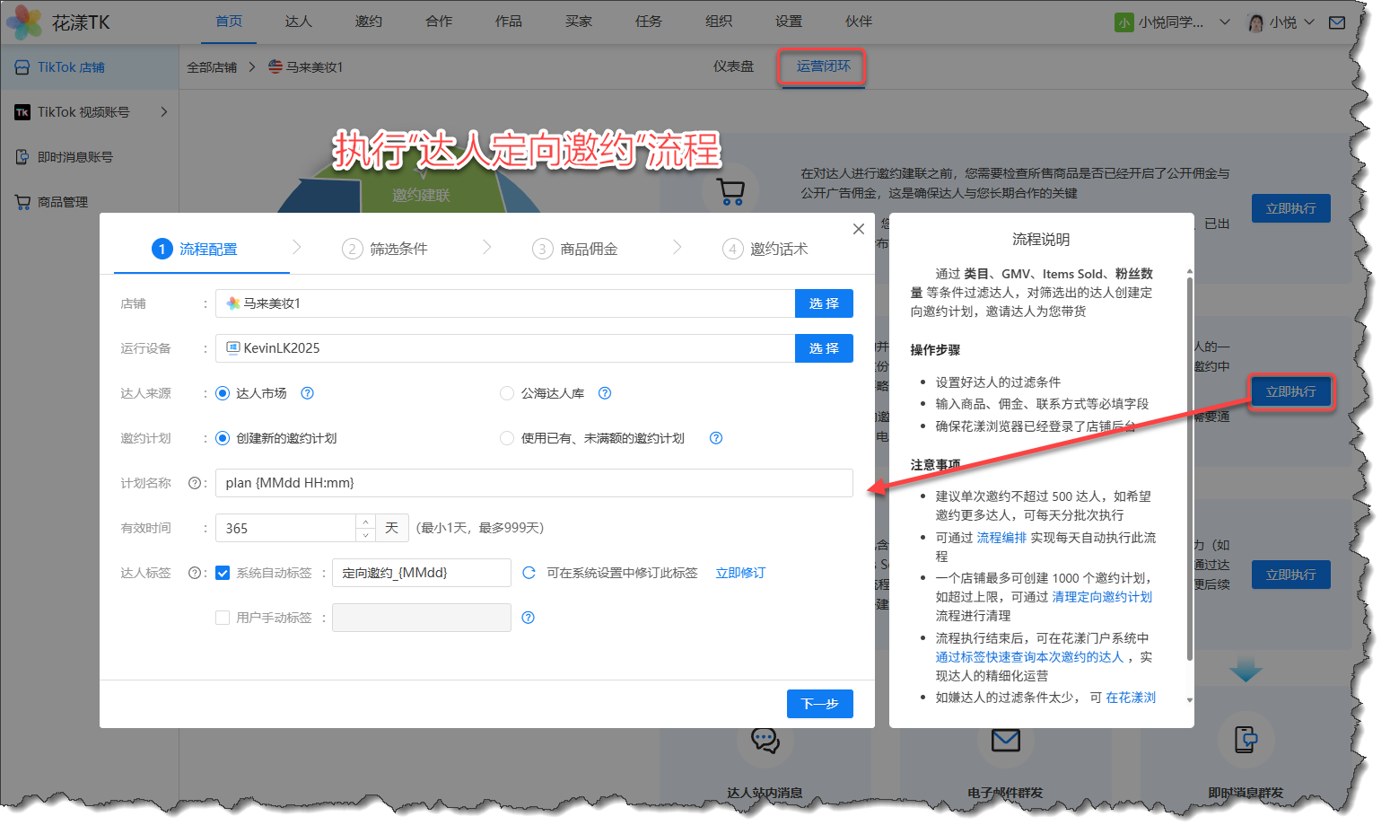 7、执行“达人邀约”相关流程