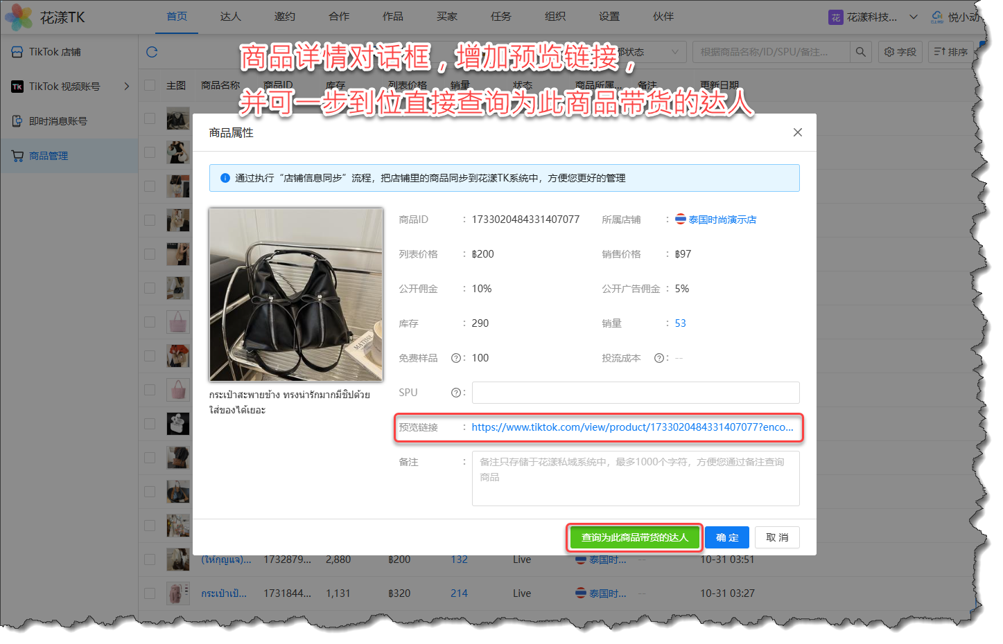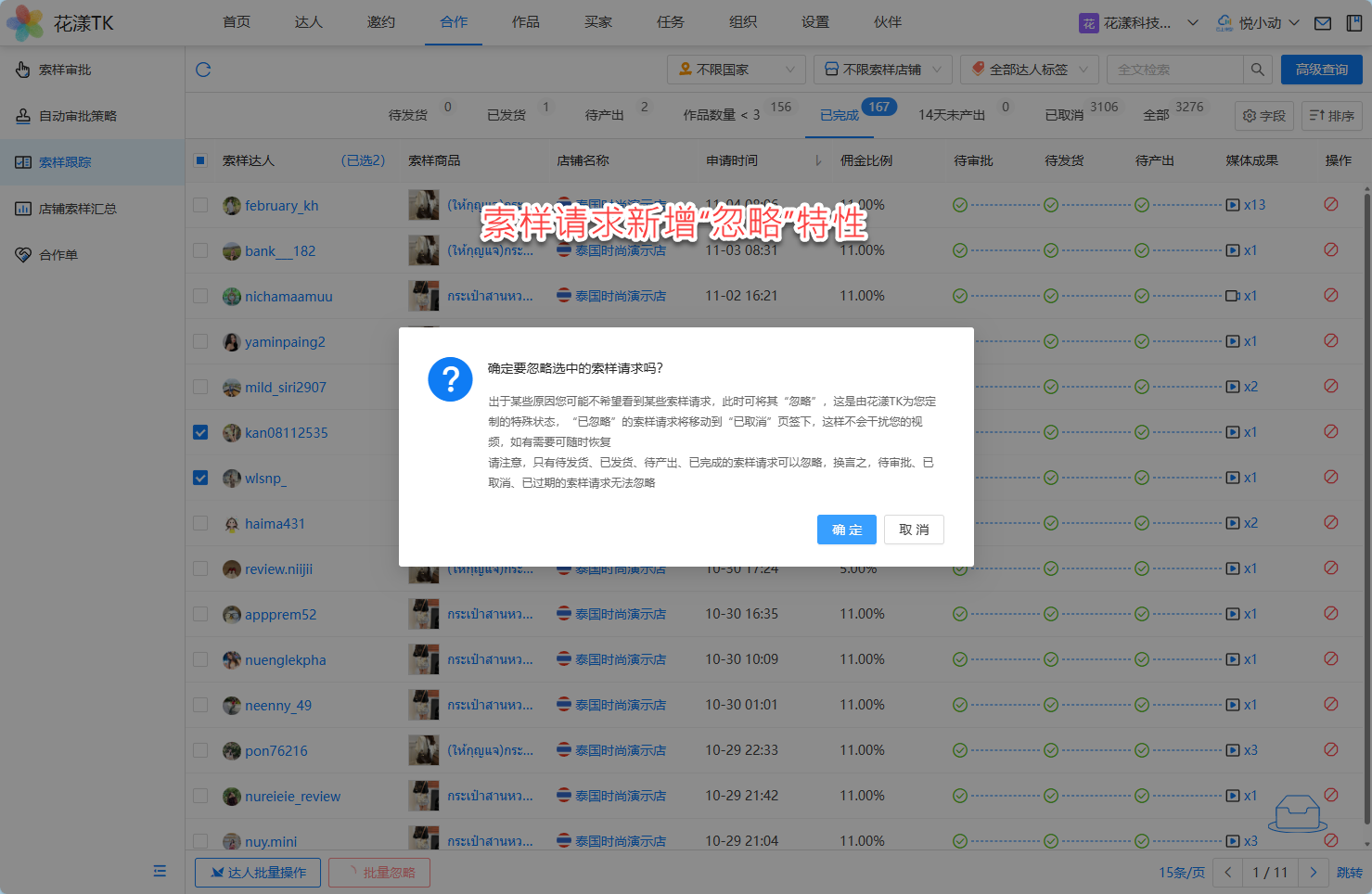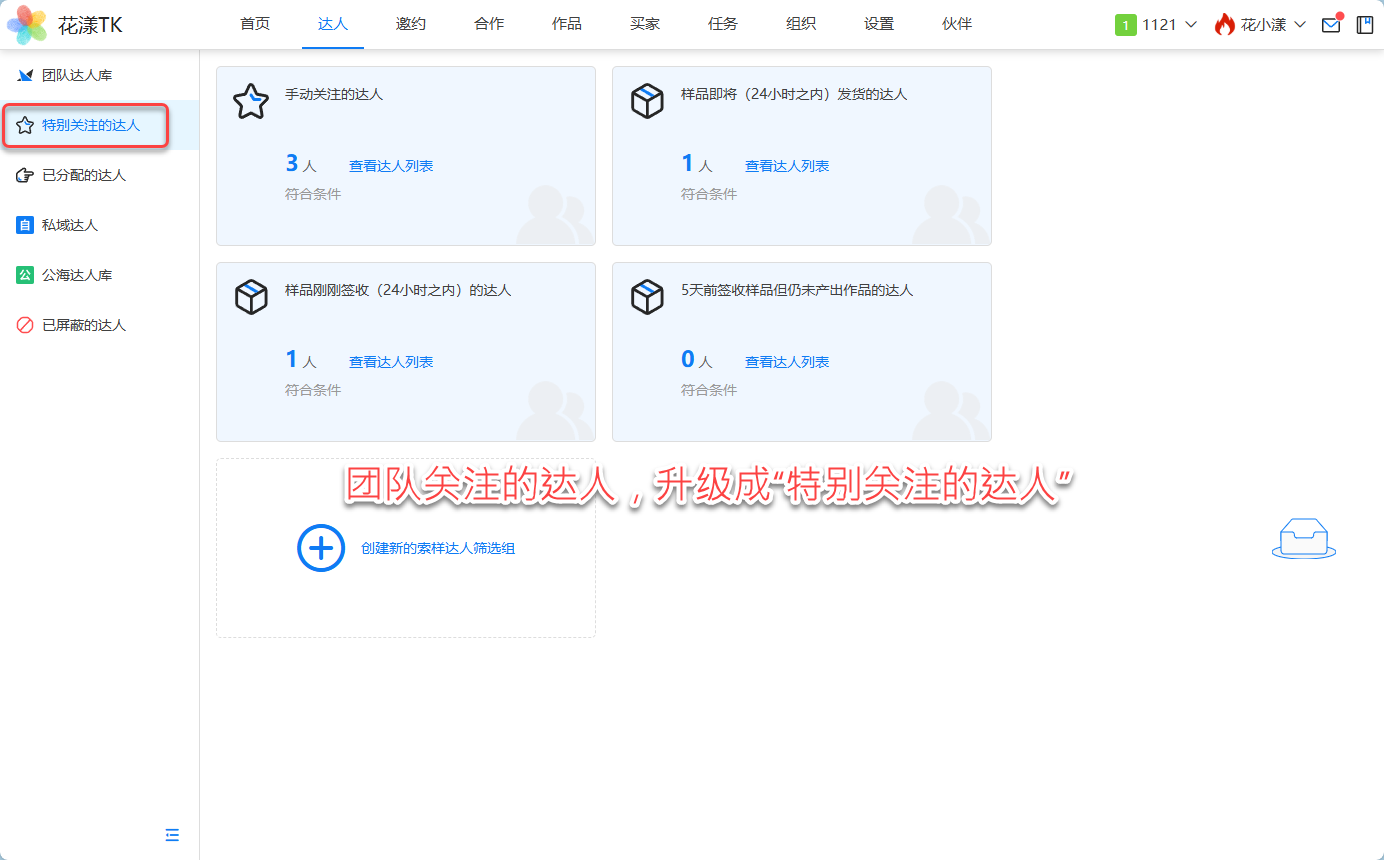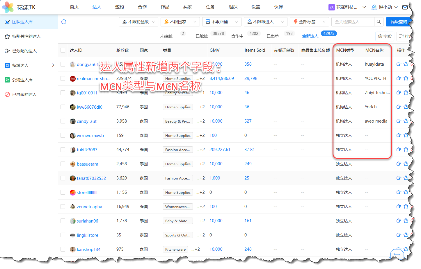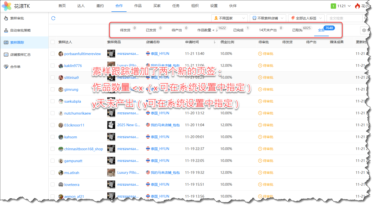 新版本推出了一个新的概念:合作单,能够把达人、BD(商务拓展)、合作的商品、投入产出的明细,放到合作单里统一管理,这对上规模的卖家团队来说,能够更精细化的管理线下达人的建联与员工的绩效: