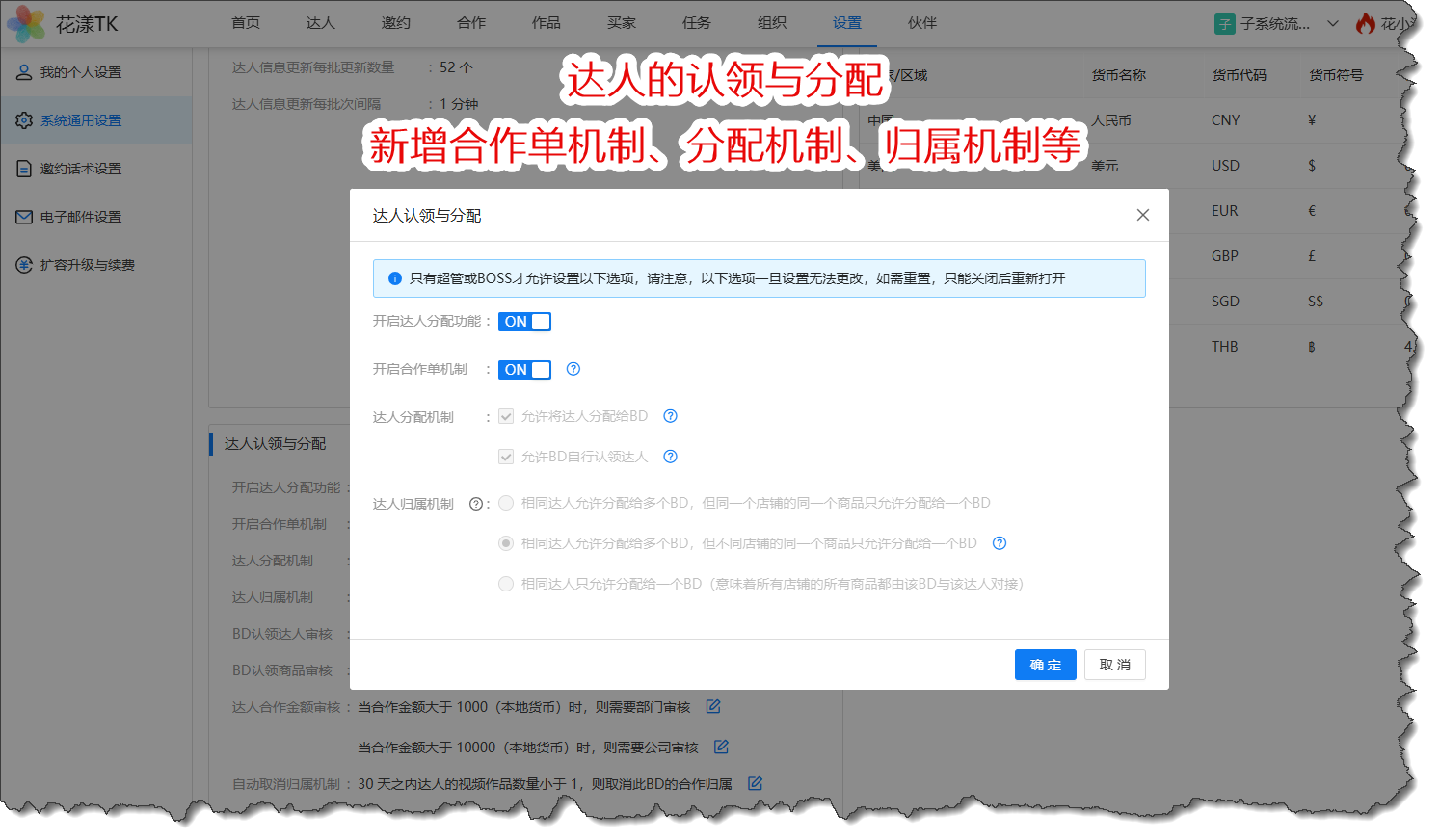 上规模的卖家团队,针对达人的认领与分配机制有着精细化管理的诉求,新版本针对达人的线下合作做了大幅增强,包括达人的分配机制、归属机制、以及认领达人的审批机制等: