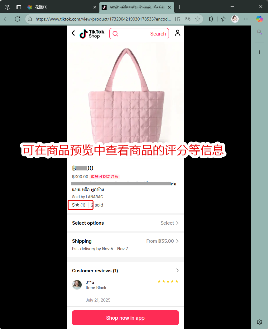 在商品预览页面中,您能够以买家视角查看商品细节,特别是商品评分、评价等信息:
