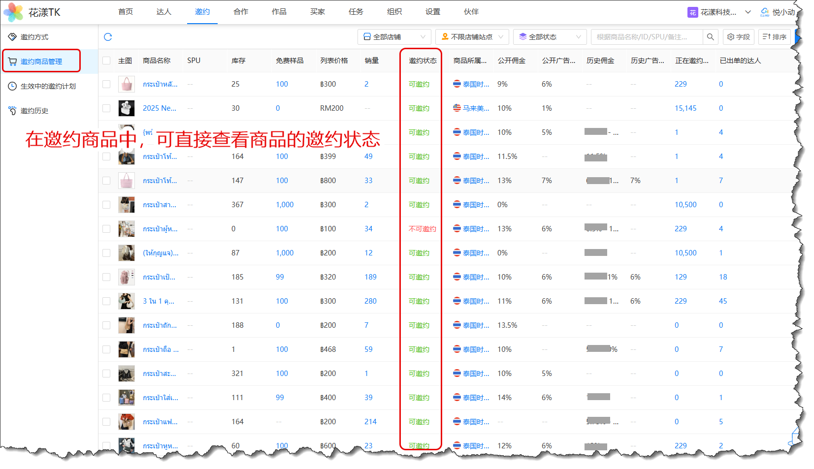 3、邀约商品管理中,新增字段“邀约状态”