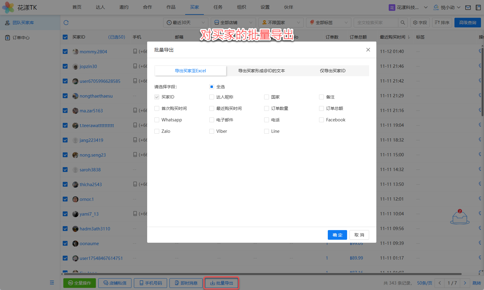 6、买家的批量导出