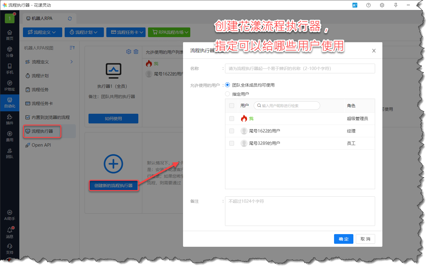 上一版本发布的 流程执行器,解决了多名用户共用一台电脑执行流程的问题,但一台电脑无法同时安装花漾客户端与流程执行器,这意味着如果用户希望在一台电脑上既安装花漾客户端连接手机,又安装流程执行器给大家共用,这二者无法兼得。新版本的流程执行器支持连接手机,这意味着您只需要在一台电脑上安装流程执行器便可以解决绝大部分的使用场景。
