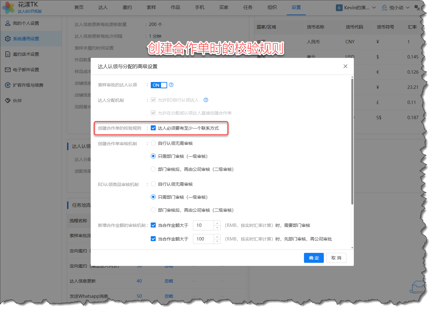 创建合作单时新增了校验规则,要求达人至少要有一个联系方式,如下图所示: