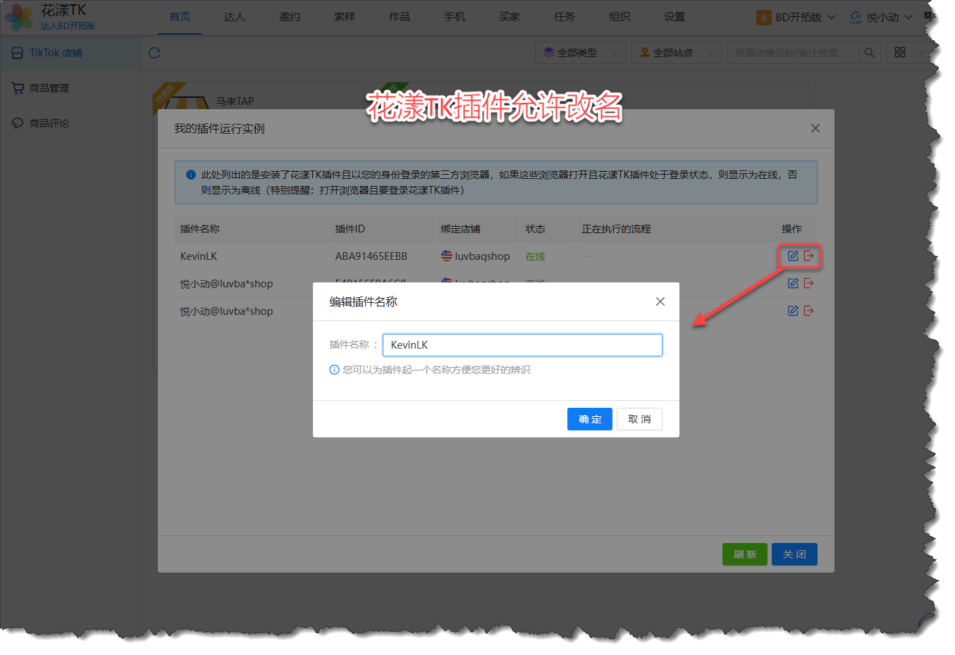 新版本允许用户对花漾TK插件进行改名,以方便用户更好的区分将流程下发到哪个浏览器中执行,需要注意的是,该特性需要您升级花漾TK插件至最新版本: