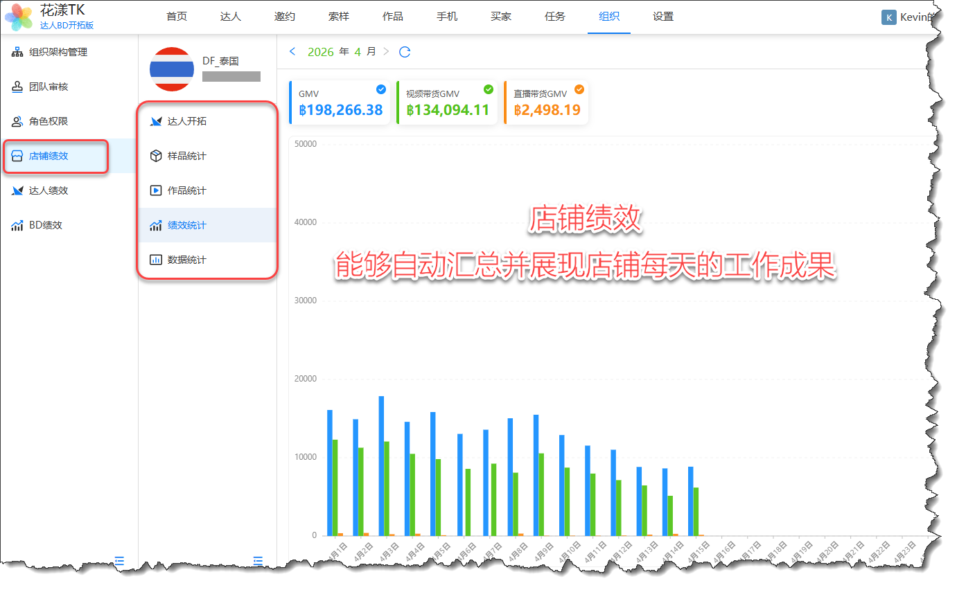 需要向您指出的是,无论是店铺绩效、达人绩效,还是 BD 绩效,所有的数据全部由花漾 TK 自动采集与汇总,既保证了数据的准确性,也让用户彻底卸下了通过 Excel 手动统计数据的烦恼。