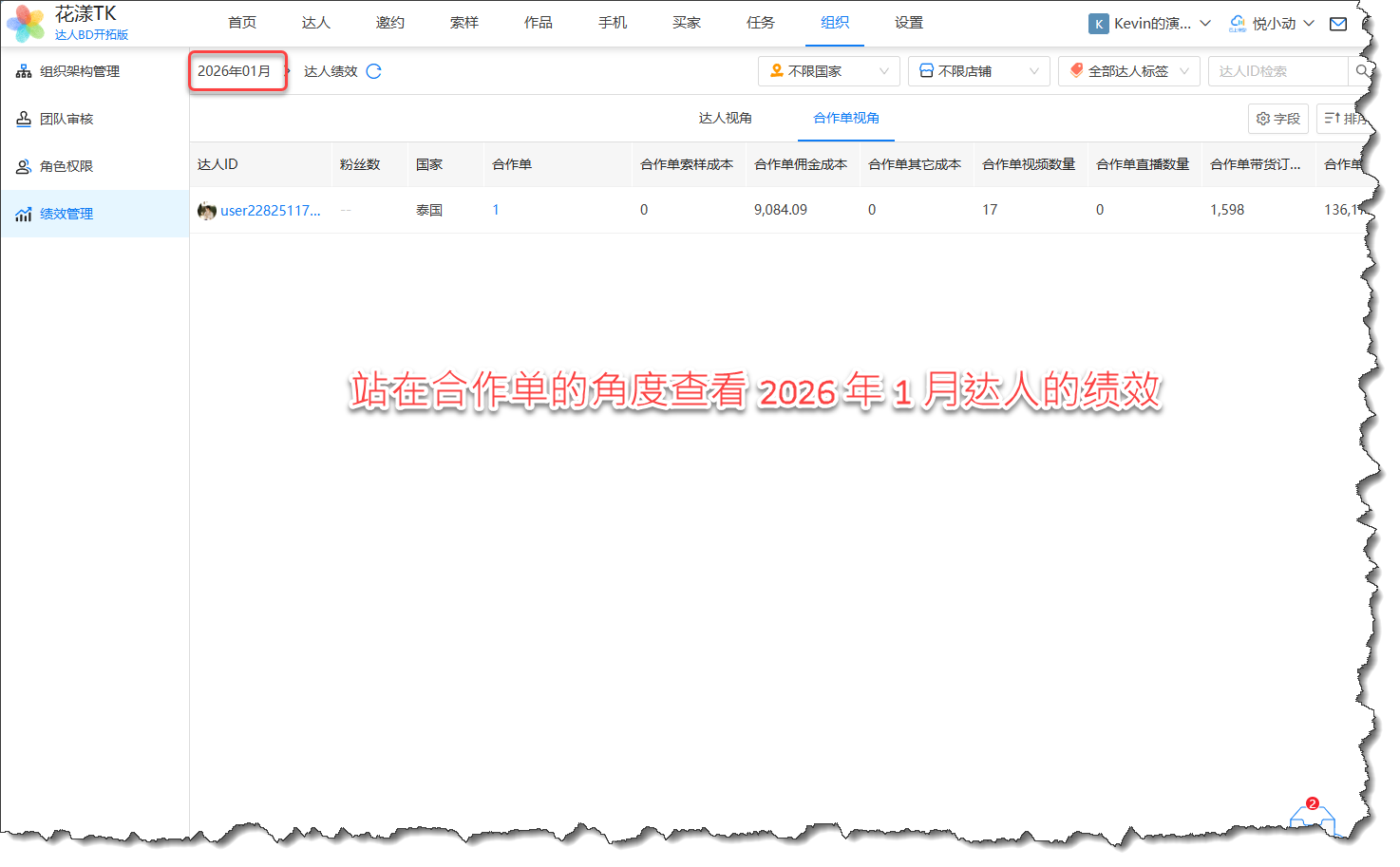 《基于合作单视角查看达人的绩效》