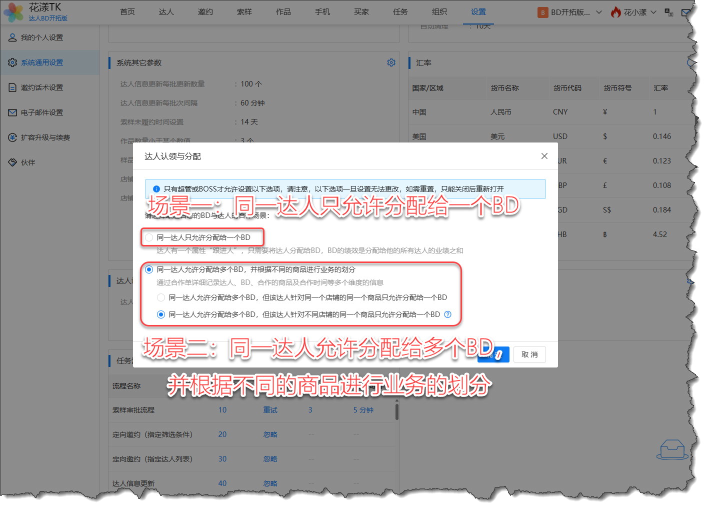 场景二:同一达人允许分配给多个BD,并根据不同的商品进行业务的划分