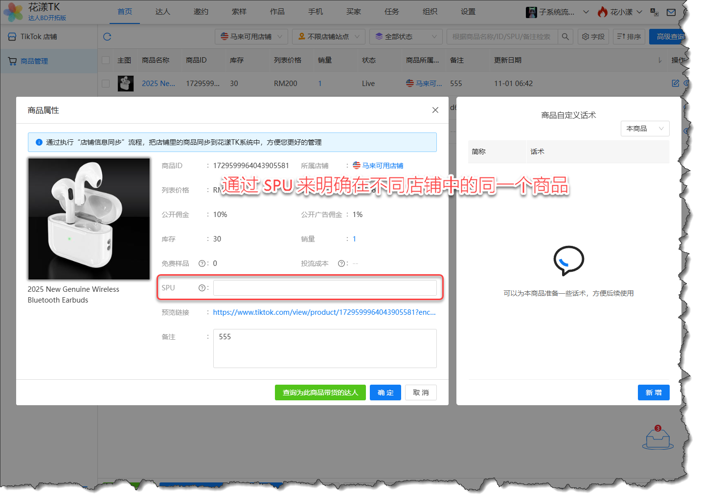 这里需要提及一点的是,同一个商品(如男士包),针对不同店铺,如何确定它们是同一个商品?答案是:通过用户手动录入商品的 SPU 来明确,如果 SPU 相同,则花漾会认为这是同一个商品。