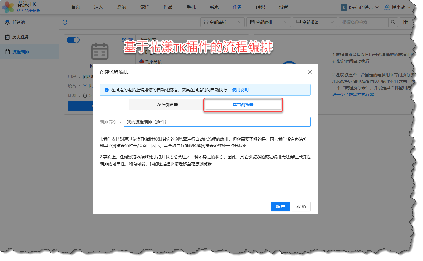 以及 “通过花漾TK插件驱动的其它浏览器的流程编排” :