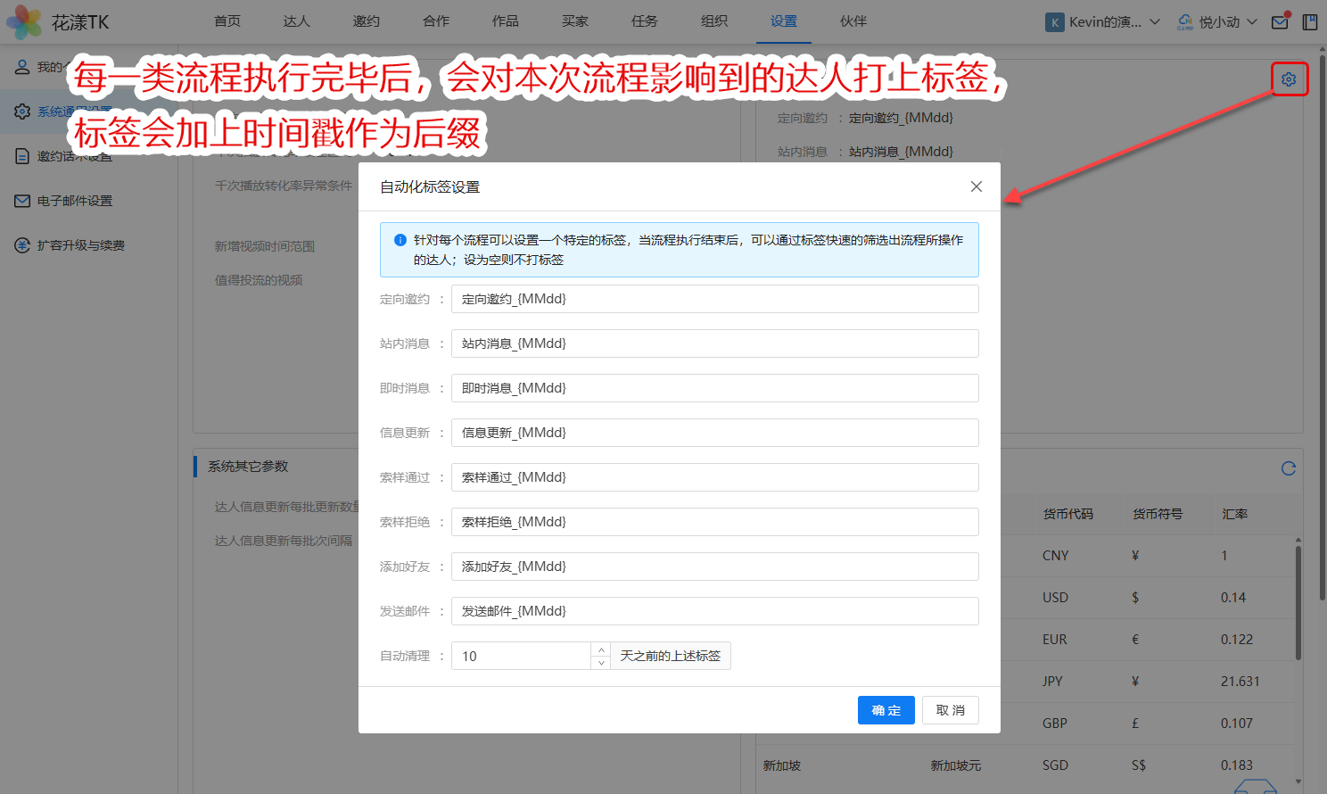 一个显而易见的问题是:不同的流程会打上不同的标签,您可以在 “系统设置” 中进行配置,如有需要,还可以设置自动清理的时间,这样可以避免标签过多导致系统性能响应变慢: