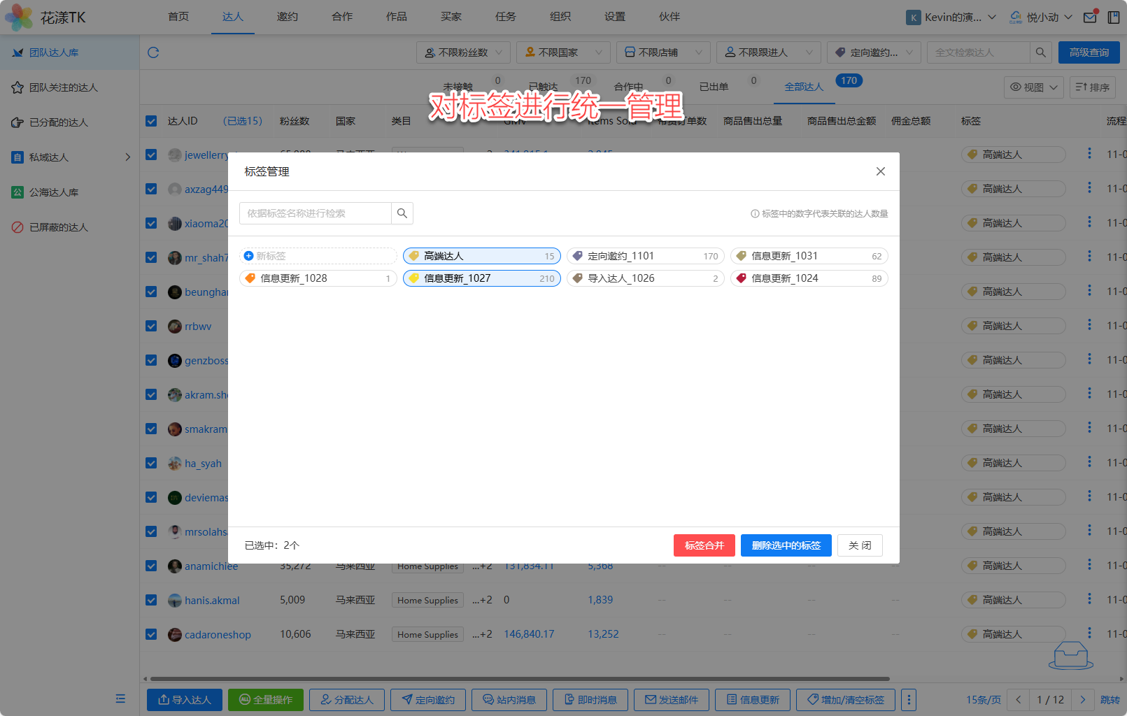 如有需要,您还可以对达人或者买家的现有标签进行统一管理: